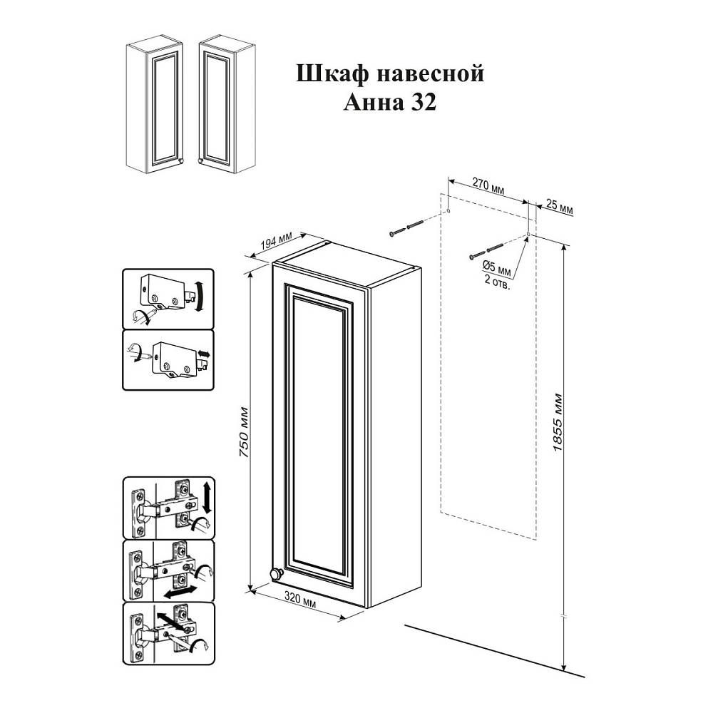 Шкаф навесной Бриклаер Анна 4627125411533 правый 32 см белый купить
