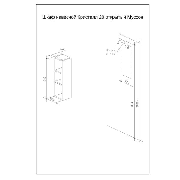 Шкаф навесной открытый Бриклаер Кристалл 4627125414602 20 см муссон