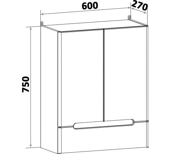 Шкаф навесной с двумя распашными дверками и нижним выдвижным ящиком. За дверками - одна внутренняя полка. Петли со встроенным доводчиком, ящик на шариковых направляющих полного выдвижения.