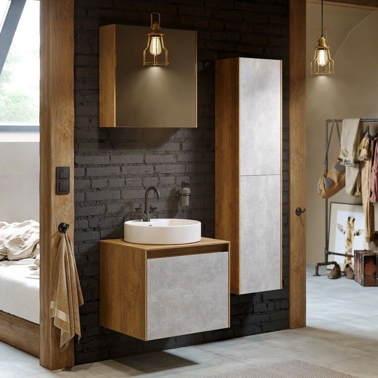 Шкаф-пенал Aqwella Mobi MOB0535DB+MOB0735BS подвесной 36.5 смПодвесной пенал 36,5 см с двумя дверьми с системой открывания «push-to-open». Цвет дуб балтийский/бетон светлый