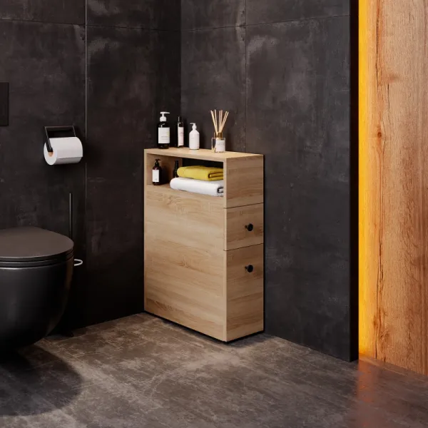 Узкий полупенал Onika Кроун 20 — отличная альтернатива привычным открытым полкам: он позволяет максимально скрыть весь визуальный шум от разноцветных упаковок средств, применяемых в быту. Пенал подходит для размещения в даже в очень компактном пространстве, теплый цвет светлого дуба удачно впишется в любой интерьер.
