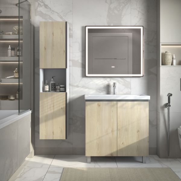 Шкаф-пенал VIGO Yuma 35 подвесной 345 дуб давос. Комплектация: корпус, 2 дверцы, петли с механизмом доводчика, 4 полки ЛДСП. Поставляется в разобранном виде.