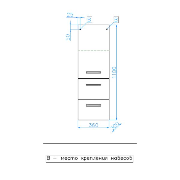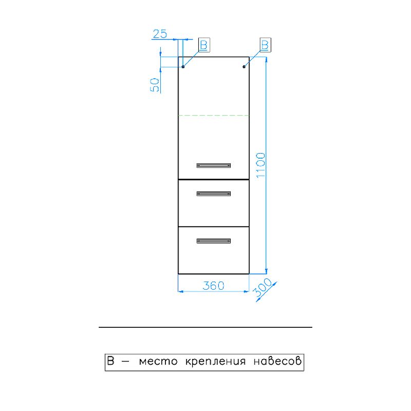 Габариты (ШхВхГ): 360х1100х300 мм.