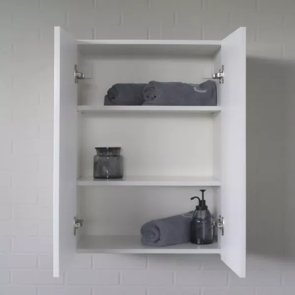 Габариты (ШхВхГ): 600*800*300 ммУниверсальный подвесной шкаф шириной 60 см может использоваться как в ванной комнате, так и в других помещениях. Это отличное решение для хранения разных предметов. За створками две горизонтальные полки. Петли с механизмами плавного закрывания.