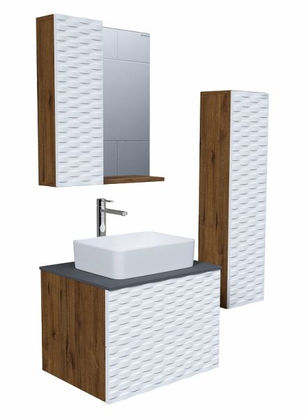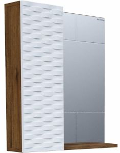 Шкаф-зеркало Альба 65 см отражает современные тенденции в дизайне мебели для ванных комнат: белый матовый цвет с 3D рисунком безупречно сочетается с текстурой под дерево , отсутствие лишних деталей.
