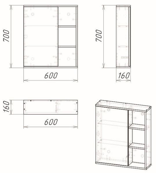 Зеркальный шкаф выполнен из влагостойкого ЛДСП, устойчивый к перепадам температур и высокой влажности.