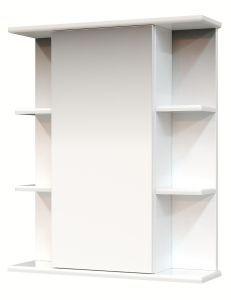 Корпус шкафа-зеркала выполнен из ЛДСП, фасад - из ЛДСП и ЛМДФ в пленке, устойчивых к механическим воздействиям, перепадам температур и высокой влажности.