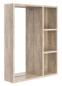 3 открытые полки обеспечивают быстрый доступ к часто используемым аксессуарам, место под зеркалом создано для косметических средств или декоративных элементов.