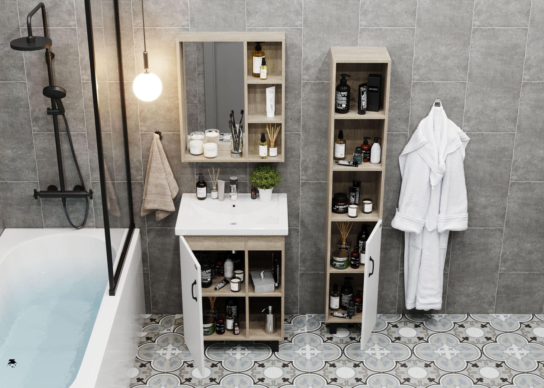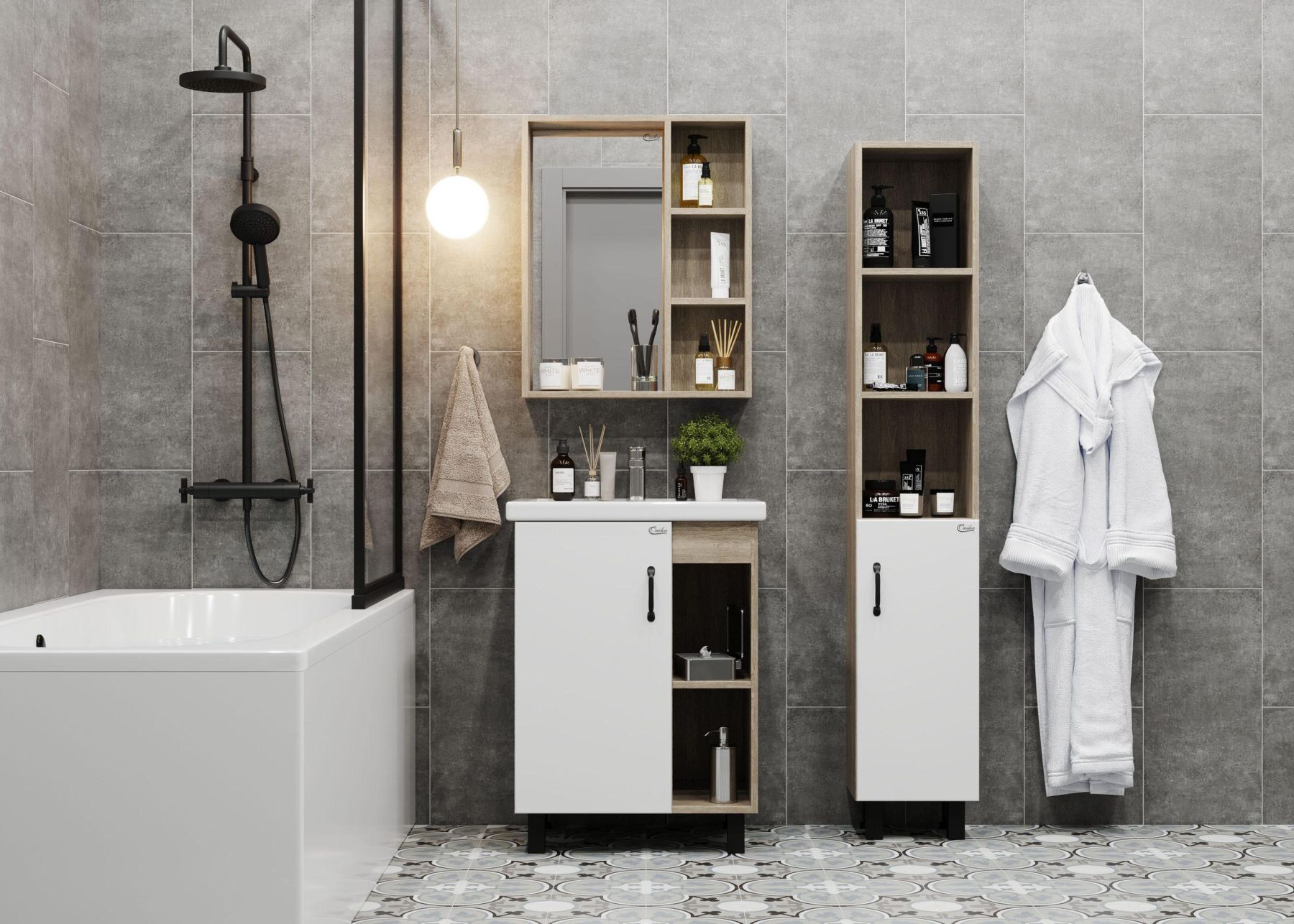 Зеркальный шкаф Onika ТИМБЕР 60 отражает современные тенденции в дизайне мебели для ванных комнат: минимализм с простыми и понятными формами, цвета дуба с роскошной текстурой, отсутствие лишних деталей.
