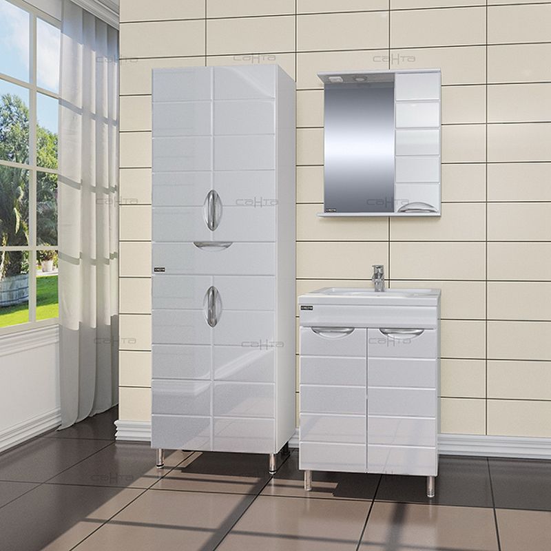 Корпус шкафа-зеркала выполнен из ЛДСП, фасад - из ЛМДФ в пленке, устойчивых к механическим воздействиям, перепадам температур и высокой влажности.