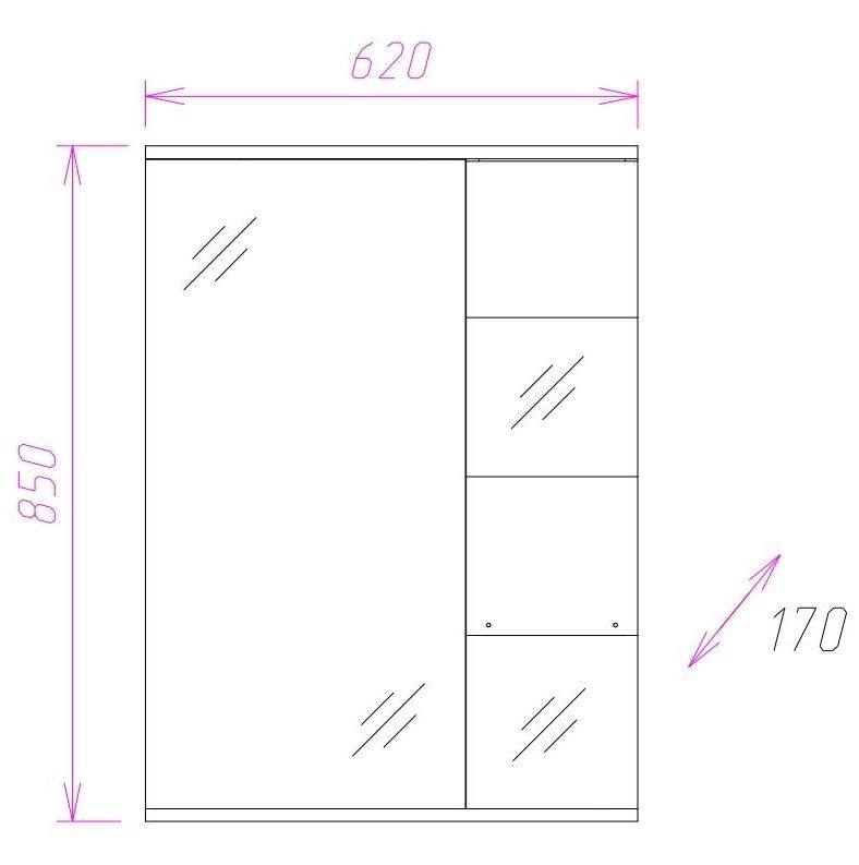 Габариты изделия 62x17x85 см.