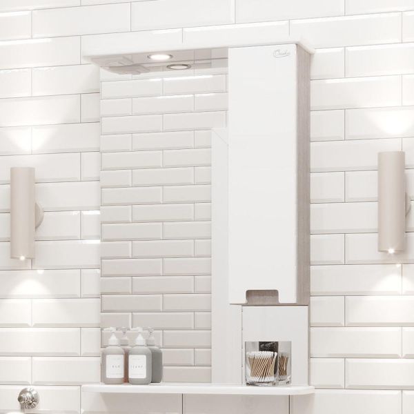 Шкаф-зеркало с подсветкой Onika Харпер 205849 правый 58см белый глянцевый купить