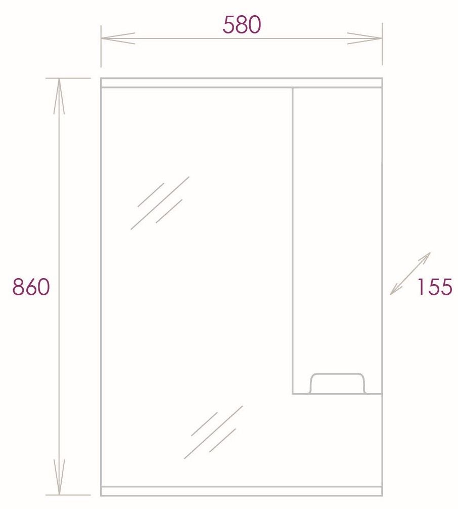 Современный функционал шкафа позволяет удобно расположить все необходимое: справа от зеркала за распашной дверцей с механизмом плавного закрывания расположено отделение для хранения, разделенное на две части горизонтальной полочкой, а под зеркалом - открытая полочка для косметических средств или декоративных элементов.