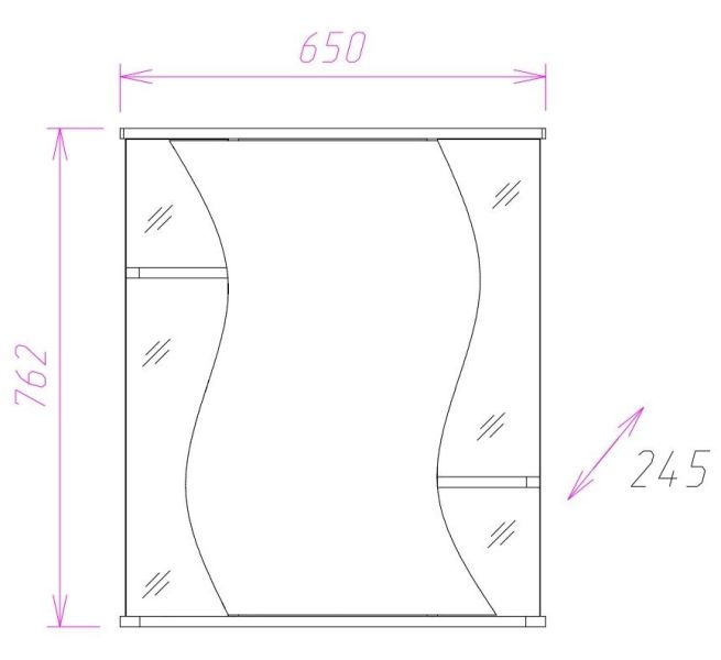Навесной зеркальный шкаф ЛИЛИЯ 65 способен преобразить ванную комнату: эстетика изогнутой линии воплощается в мягкой волнообразной форме дверцы и исполняет роль основного выразительного элемента для интерьера помещения.