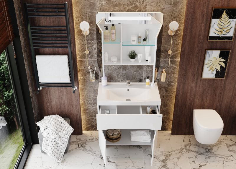 Зеркальный шкаф Onika НЕАПОЛЬ 80 - это безграничный полет фантазии, подкрепленный грамотным сочетанием модных тенденций и новинок в мире мебели для ванной комнаты. Индивидуальность шкафа отражается в строгости линий, исключительном минимализме и акценте на свете.