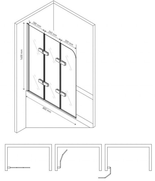 Шторка на ванну Berges City 2.0 80см хром 062012