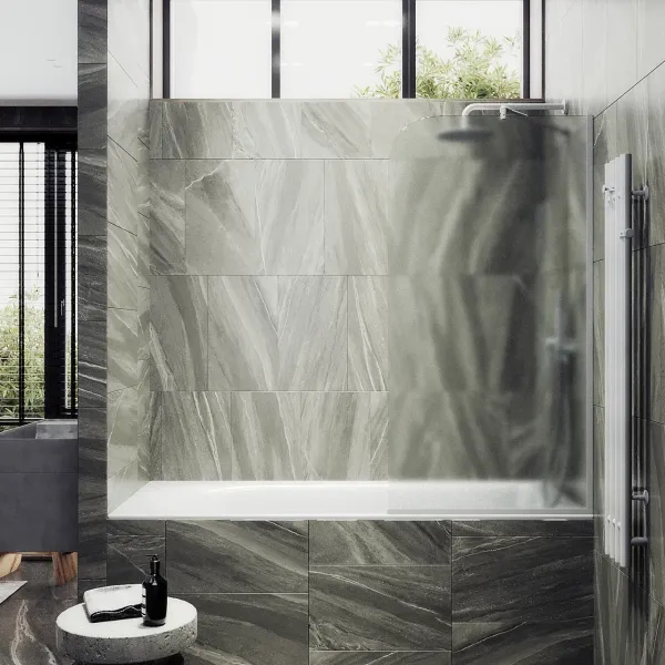 Монтаж осуществляется с помощью алюминиевого профиля, что обеспечивает надежность крепления и безопасность использования стеклянной перегородки для ванной. Также, шторка оснащена специальным уплотнителем, который предотвращает попадание воды на пол ванной комнаты. Закаленное стекло, цвет Сатин, толщина 8 мм 1400х400 мм - 1 шт.