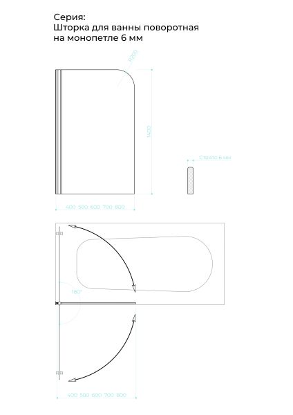 Шторка на ванну на монопетле by Deonria C-140-70-6-T-B 70см чёрный/прозрачный купить