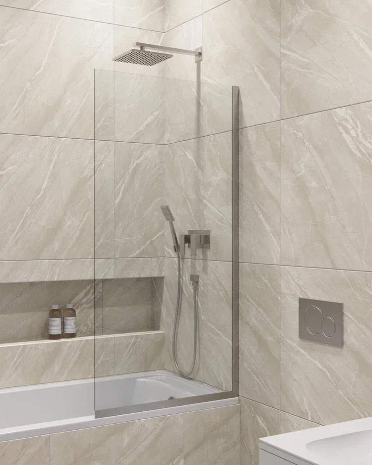 Шторка на ванну в профиле by Deonria C-140-60-8-T-HM 60см хром матовый/прозрачный купить