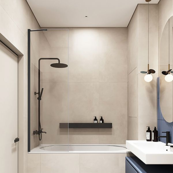 Шторка на ванну Veconi Palau PL-84B, 900x1500, черный, стекло прозрачное