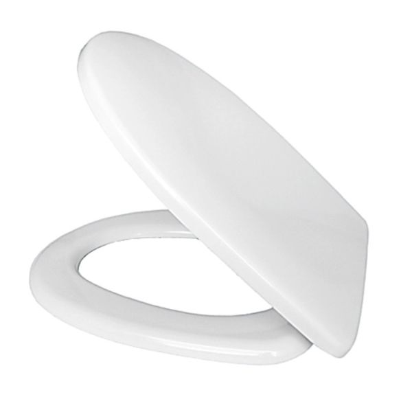 Пластиковое сиденье для унитаза IDDIS белого цвета классической округлой формы. Изготовлено из дюропласта, устойчиво к царапинам, не желтеет, надолго оставаясь белоснежным и чистым.