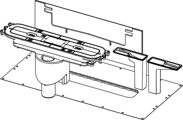 Сифон для душевого профиля TECEdrainprofile для установки в бетонной стяжке. Для вертикального подсоединения дренажной линии DN 50. Установленная на заводе гидроизоляционная манжета с защелкой с Seal System для подсоединения композитной гидроизоляции в соответствии с DIN 18534.