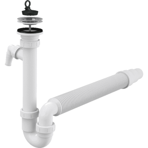 Сифон для мойки AlcaPlast трубчатый с нержавеющей решеткой ?70 гофрой и подводкой A830-DN50/40 купить