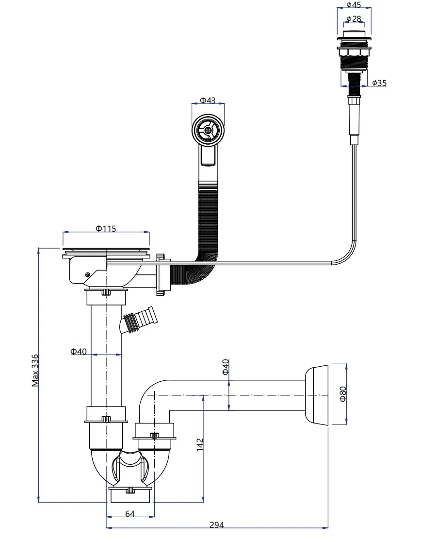"Сливная арматура для одночашевой мойки.