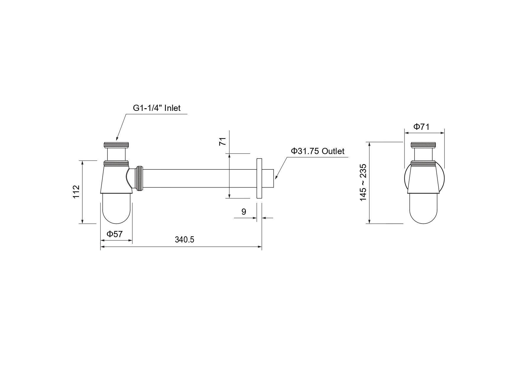Основной материал сифона: латуньМатериал трубы: нержавеющая стальДиаметр слива, см: 3,2Подключение к канализационной трубе, см: 3,2Вид сифона: бутылочныйНаправление выпуска: боковое (горизонтальное)Тип продукта: сифонНазначение: для раковиныРегулировочное расстояние (мм): 145-245Гарантия (лет): 3