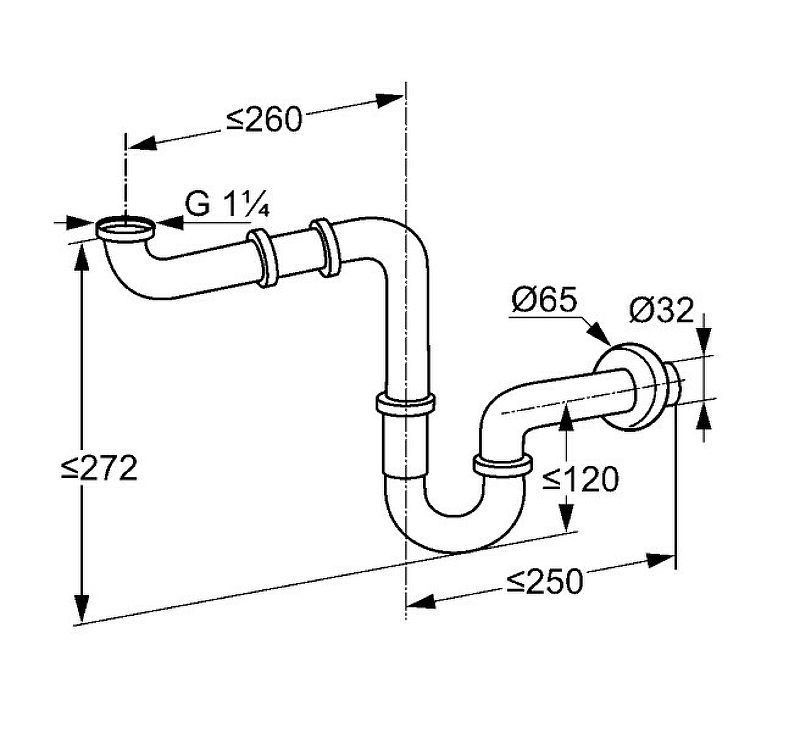 • сифон G 1 1/4 (монтаж в труднодоступных местах)
