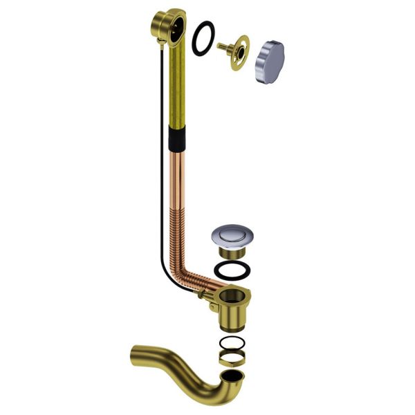 Обвязка для ванны полуавтоматическая ByonОткрытие и закрытие выпускного клапана происходит путём поворота крышки на переливе. Материал: Корпус из латуни, гофрированная труба из красной меди, выпуск и нижний клапан - хромированная латунь. Размер: между центрами 60 см, высота регулируется.Гарантия 1 год.Срок службы 25 лет.Бесплатная доставка по Москве при покупке с ванной!Новые технологии обработки внутренней части поверхности трубки позволяют понизить коэффициент трение металла до минимального для материала значения. Благодаря этому, при правильной экспуатации возникновение зассоров в ванной не происходит.