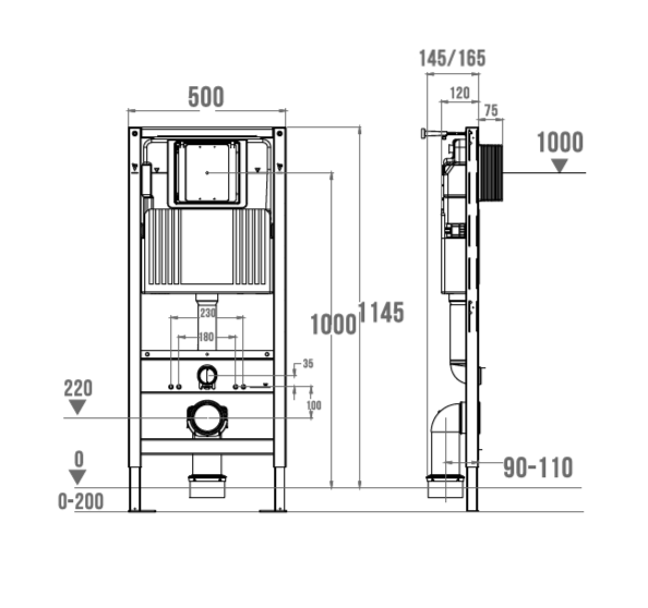 • Жесткая несущая рама из горячеоцинкованной стали 2.0 мм, монтажная пластина унитаза - 3.0 мм коррозионная стойкость по стандартам ASTM B117
