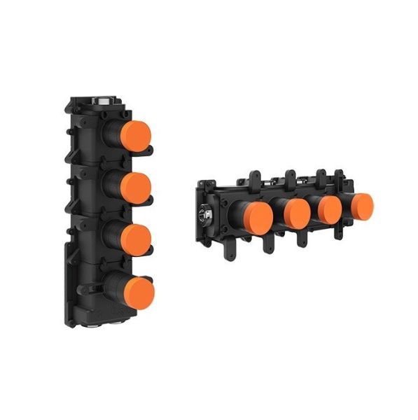 Использование трех независимых выходов позволяет создавать индивидуальные комбинации для душа и ванны, что делает процесс купания более комфортным и разнообразным. Системы с термостатом гарантируют, что температура воды останется постоянной, предотвращая неприятные перепады. Скромный и лаконичный дизайн скрытой части позволяет сохранить минималистичный стиль интерьера.