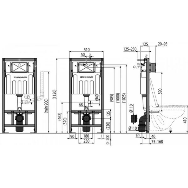 Скрытая система инсталляции – основа для монтажа любых моделей подвесных унитазов. Используется в комплекте с кнопкой управления (приобретается отдельно). Инсталляция успешно прошла все технические тесты на соответствие актуальному ассортименту подвесных унитазов KERAMA MARAZZI.Данная модель оснащена улучшенными креплениями к стене и шумоизоляционной прокладкой, содержит дозатор таблеток для унитаза. Также предусмотрен специальный вывод для подключения функции вентиляции чаши (для активации необходимо приобрести отдельный комплект).