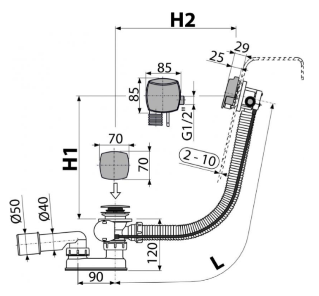 • Для слива воды из ванны в канализационный сток
