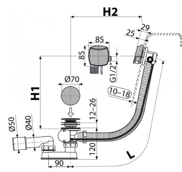 Слив-перелив для ванны AlcaPlast с напуском воды через перелив для ванн с толстыми стенами 80см хром A565CRM1-80 купить