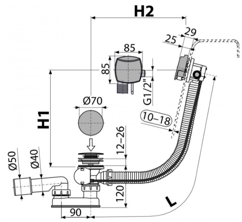 • Для слива воды из ванны в канализационный сток