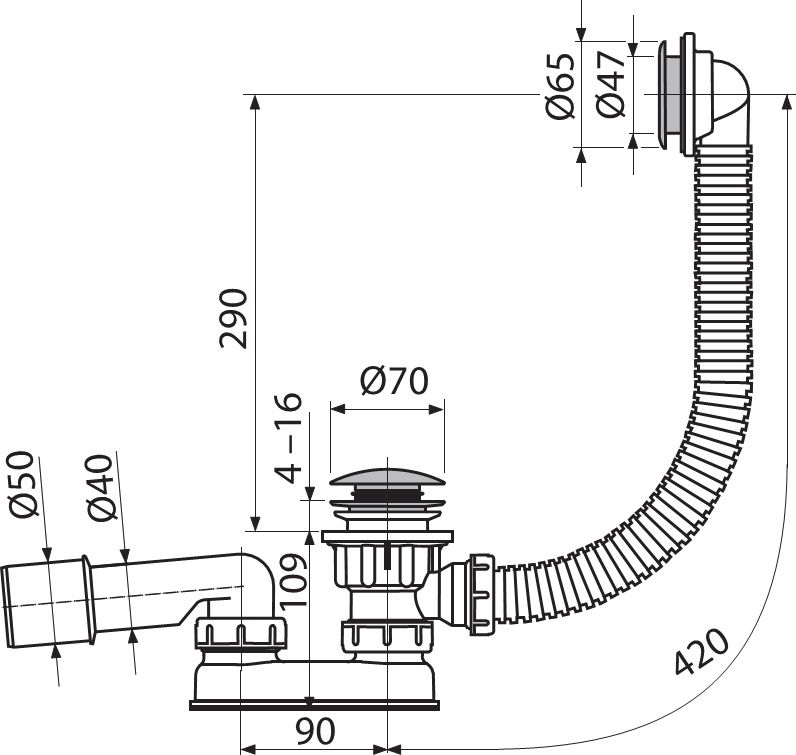 Слив-перелив для высокого душевого поддона AlcaPlast клик-клак хром A503KM