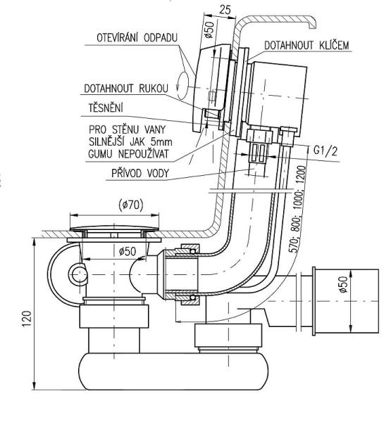Слив-перелив Rav Slezak NP0002/570Z Click-Clack ЗолотоNP0002/570Z Сифон для ванны металл/пластик 570 мм. ЦВЕТ ЗОЛОТО, наполнение водой через слив-перелив
