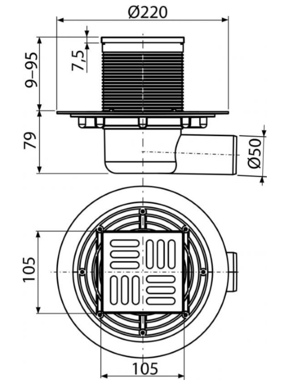 Сливной трап AlcaPlast 105 ? 105/50мм решетка - хром APV1321 купить