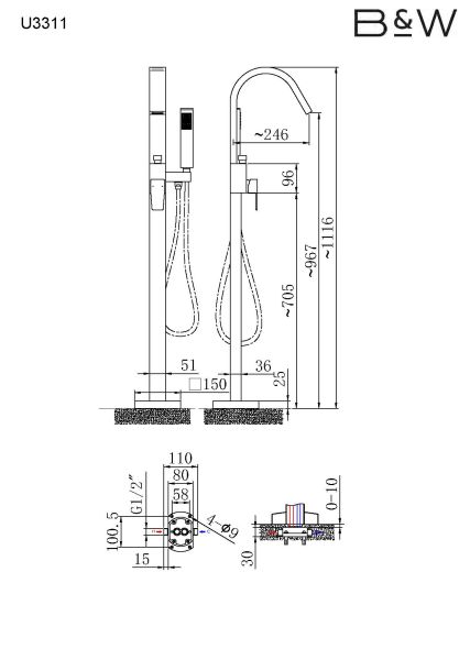 Смеситель Black & White Universe 3311U для ванны и душа