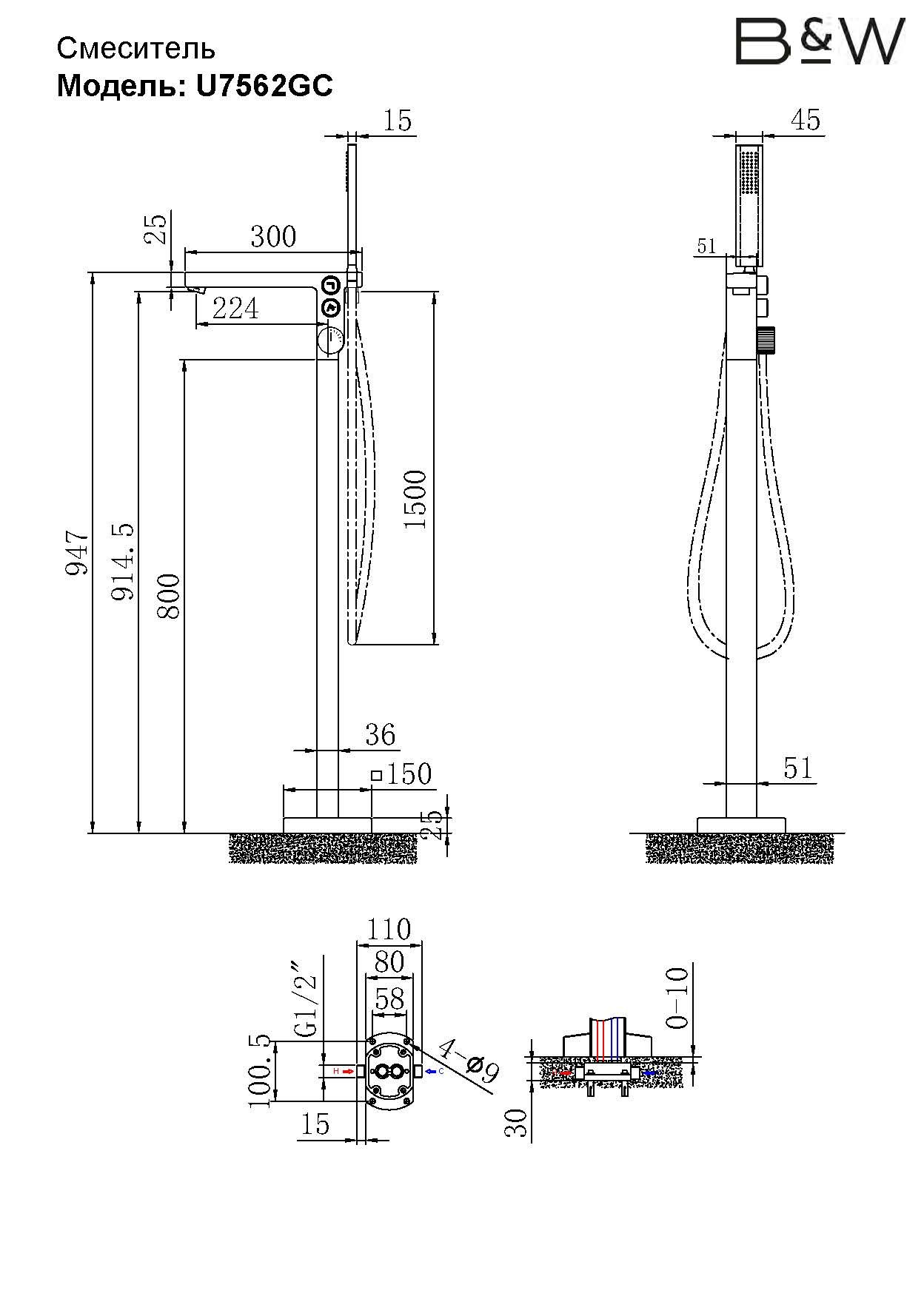 Смеситель Black & White Universe 7562GM для ванны и душа купить
