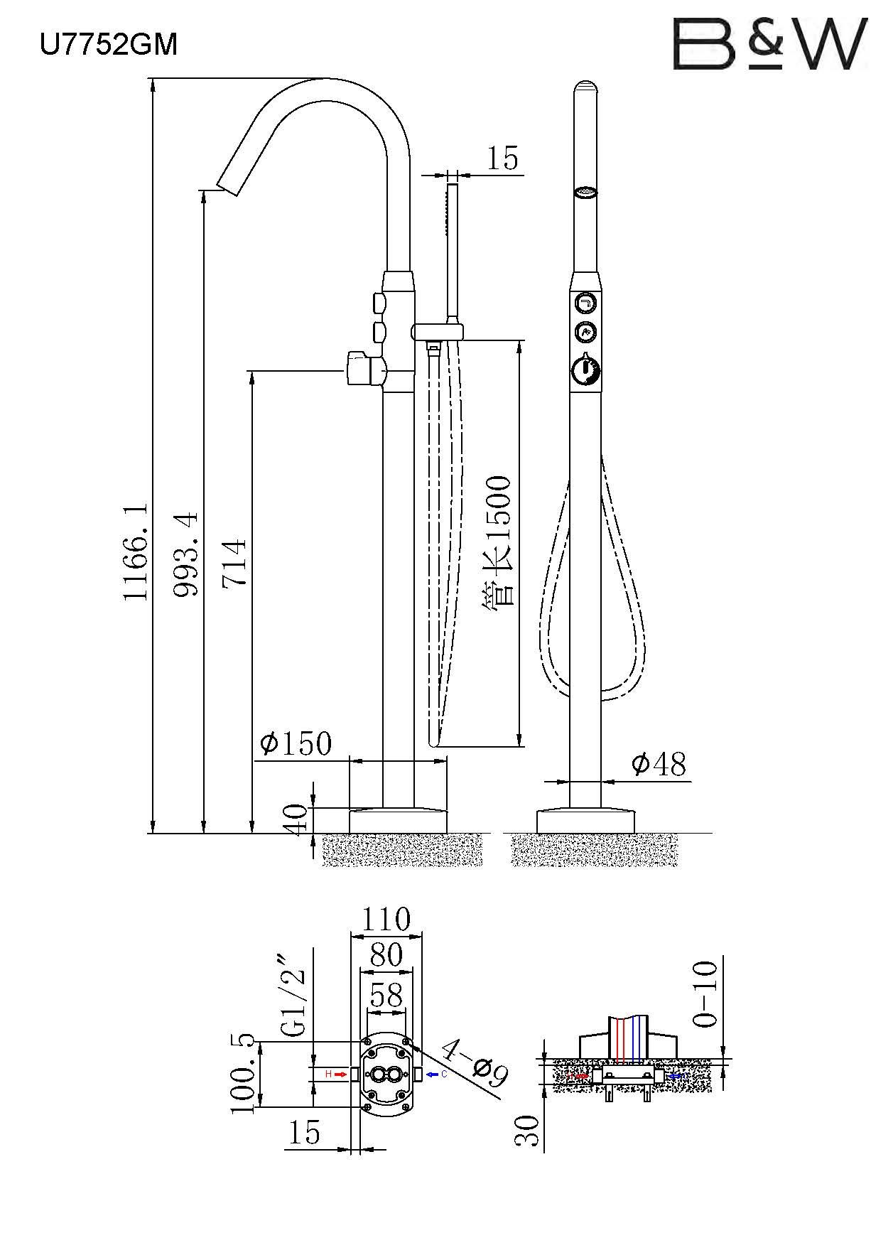 Смеситель Black & White Universe 7752GM для ванны и душа купить