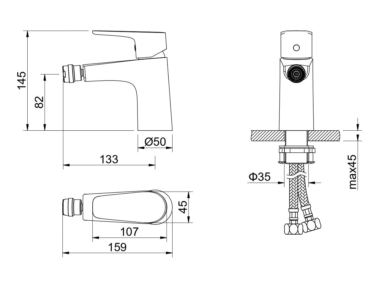 • Высота смесителя: