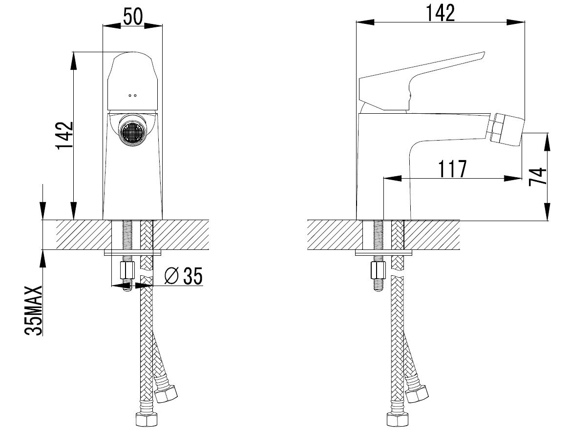 Смеситель для биде AZARIO CAMPO AZ-KX468275C керамический картридж