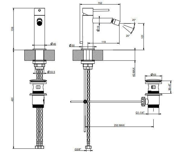 Gessi Flessa смеситель для биде однорычажный, донный клапан, соединительные шланги.