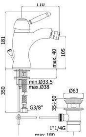 Смеситель для биде с авт.д/к 1 1/4", Золотая вспышкаСмеситель для биде Paffoni Giorgia GI135GF.ВНИМАНИЕ! В монтажной схеме указан европейский стандарт подводки 3/8, мы предлагаем комплект, адаптированный к российским условиям, со стандартом подводки 1/2.Комплектация: