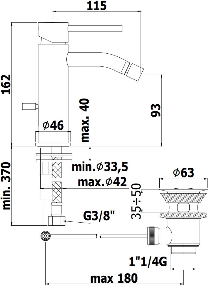 Paffoni Смеситель для биде с авт.д/к 1 1/4", Steel lookingКомплектация:Смеситель
