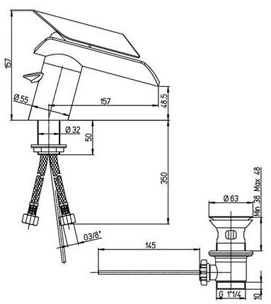 • Высота смесителя: