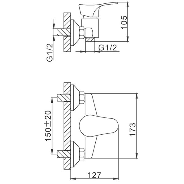 Способ монтажа:На два отверстия, Настенные